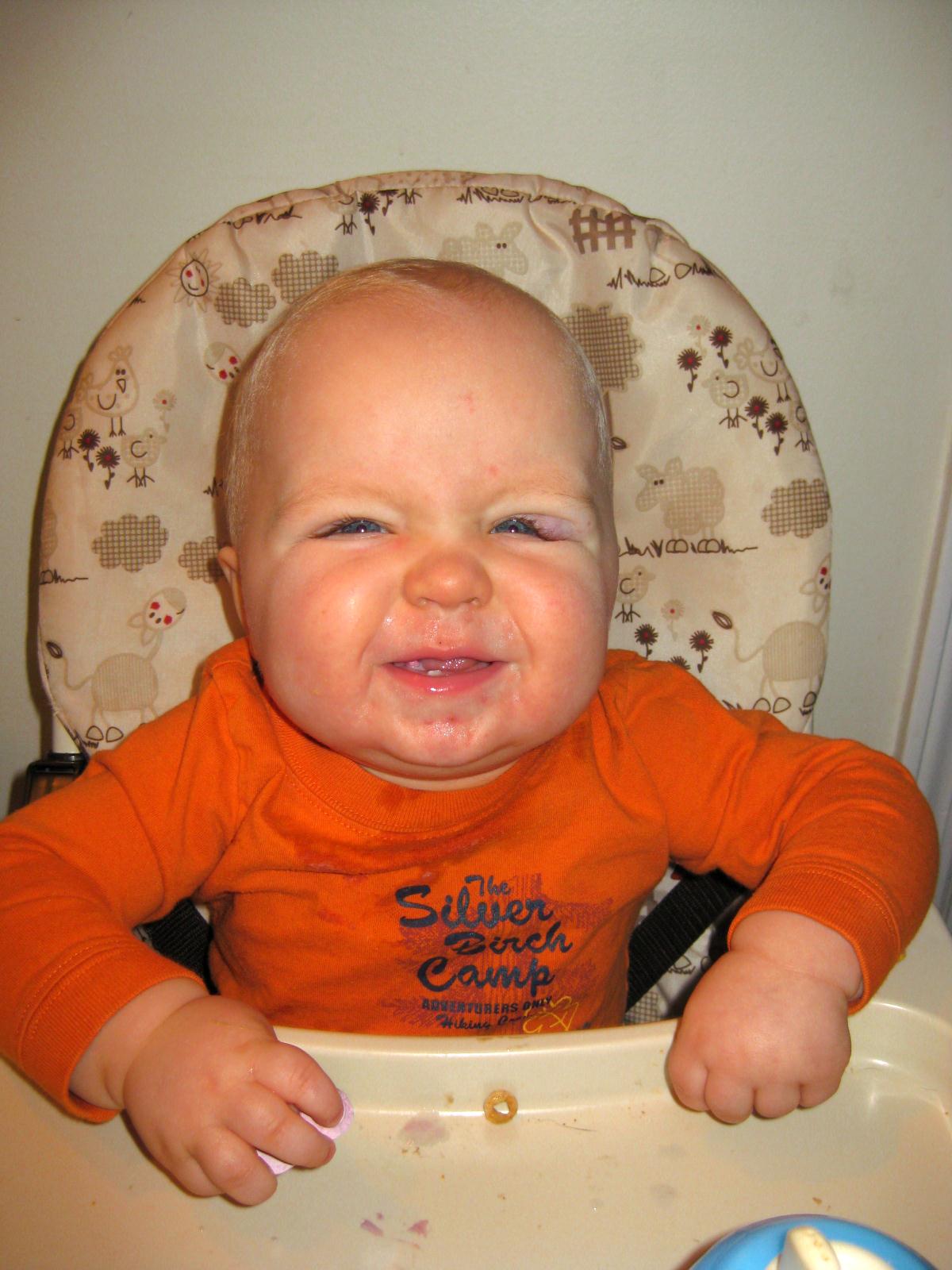 Hampton woke up this morning with a big mess of a diaper. Jammies were dirtied for sure and I am now convinced I will never buy cheap diapers again. It is just not worth it. Mess #1.