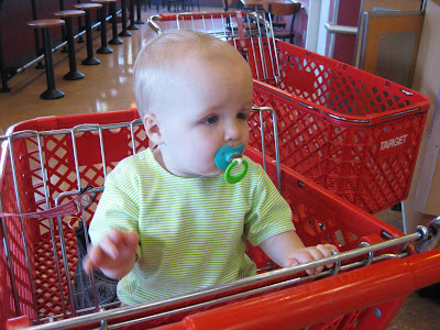 The title pretty much sums up our day. This morning (which started very early at 6) the boys and I went out to Target. Everett had gotten some Easter money (3 dollars to be exact) so I put it in his wallet and off to Target we went. His first purchase was a juice box. He insisted on sitting at the table in the cafe to enjoy it (while Hampton and I watched!)